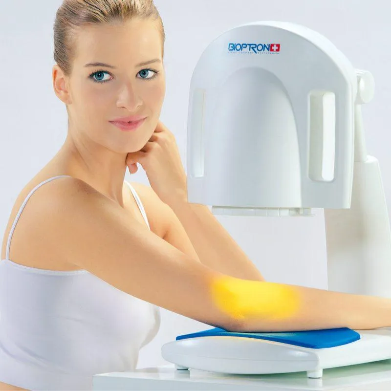 There is also a major added bonus of BIOPTRON light therapy. This helps stimulation of the natural production of skin collagen that prevents scars and reduces fine lines and wrinkles. It has a positive stimulating effect on specific cells in the skin known as fibroblasts, which results in the production of collagen and elastin. This safe and non-invasive treatment with BIOPTRON light therapy has no known side effects or contraindications.